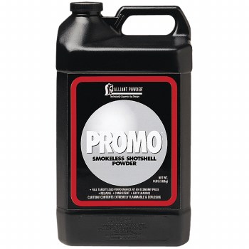 Alliant Promo Powder 8 lbs. is popular and affordable. This relatively new powder is smokeless, burns clean, and meters easily. The one difference from Red Dot is that this powder is denser. As a result, a smaller bushing is needed for reloading to get the same charge weight.