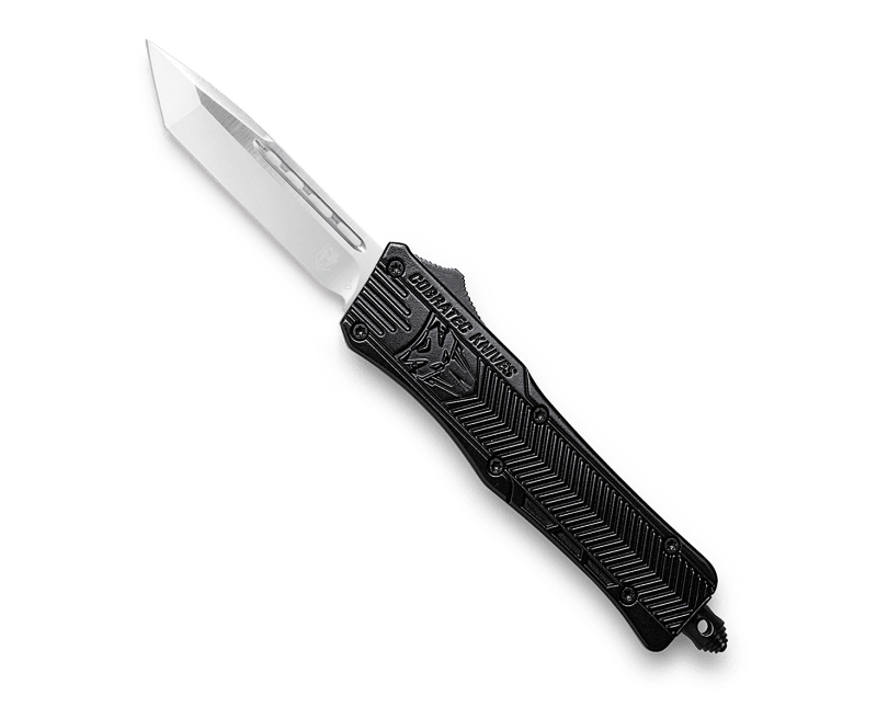 The CTK-1 is one of the best out the front knife (OTF) for general use and a great choice as your everyday carry. The handle is designed from high-grade aluminum alloy and features a D2 steel blade. The knife is ambidextrous as the pocket clip can be switched to either side of the handle, depending on your preference. This OTF knife features a pocket clip, a glass breaker for emergencies and includes a nylon sheath