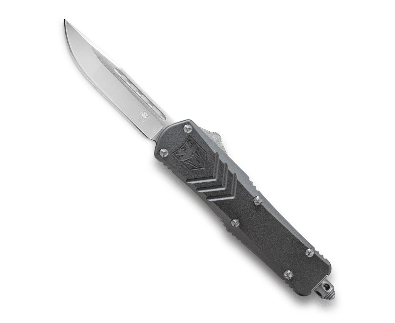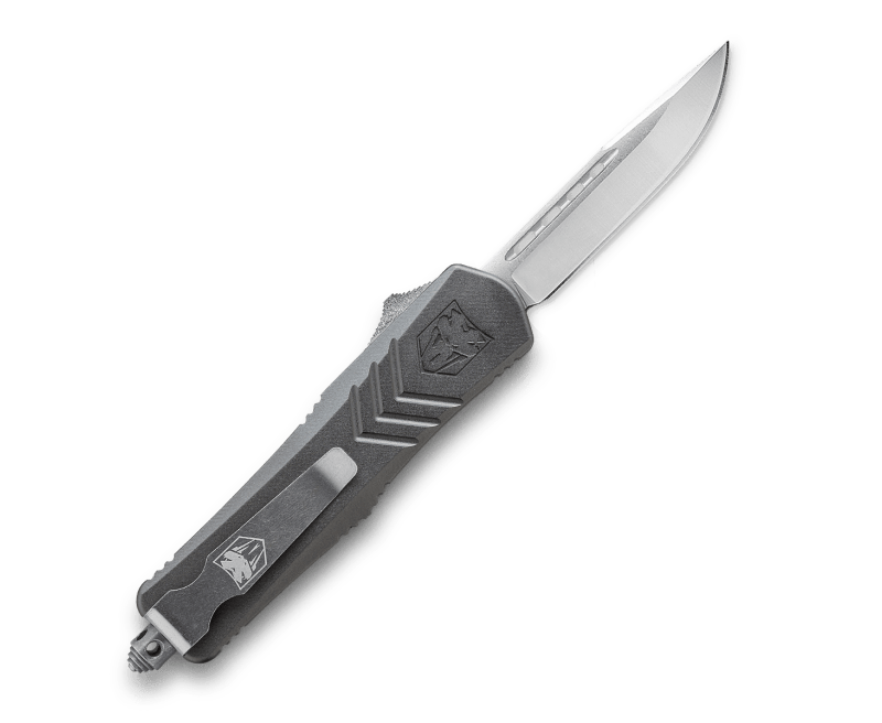 This CNC Machined OTF knife is very sleek and fits nicely in your pocket. The handle is expertly engineered from Aviation Aluminum and features a D2 Steel blade. The knife is ambidextrous as the pocket clip can be switched to either side of the handle depending on your preference. This OTF knife features a pocket clip, a glass breaker for emergencies and includes a nylon sheath.