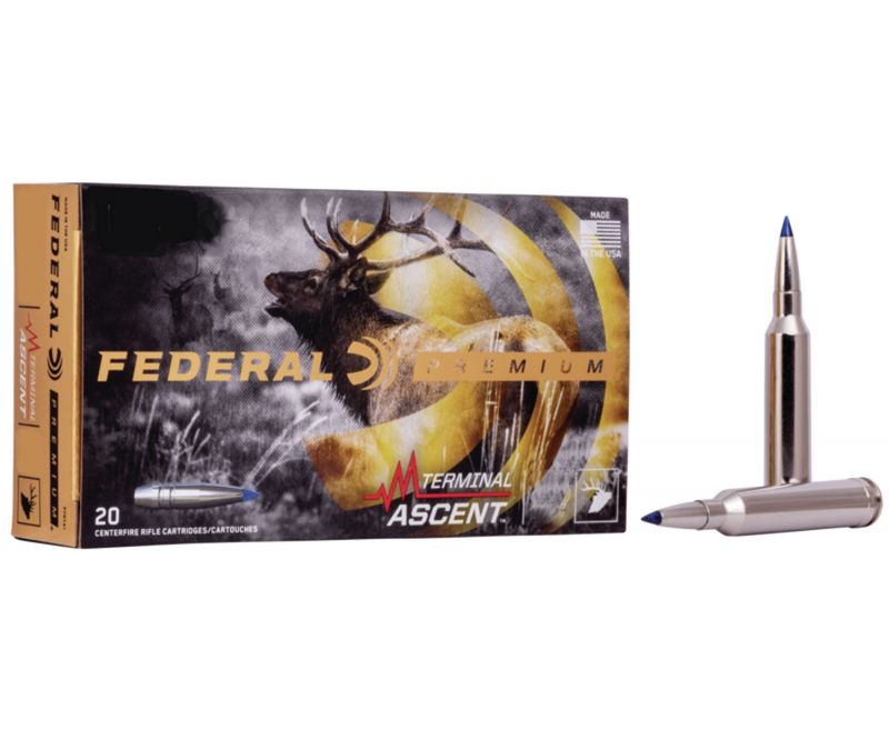 Any hunt. Any range. Go beyond what you ever thought possible with Federal Premium Terminal Ascent. Bonded construction penetrates deep on close targets, while the patented Slipstream polymer tip initiates expansion at velocities 200 fps lower than comparable designs. The bullet’s long, sleek profile offers an extremely high ballistic coefficient, and its AccuChannel groove technology improves accuracy and minimizes drag. Available in a full selection of long-range hunting cartridges.