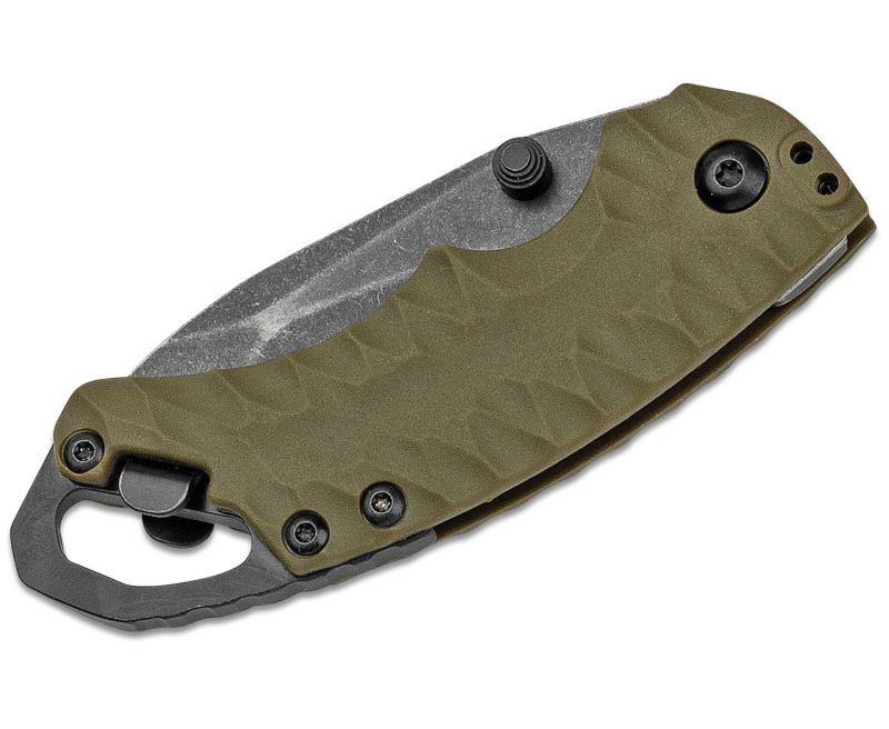 The Shuffle is a compact knife and multi-function tool for everyday adventurers. It sports a wide drop-point style blade, a backspacer that doubles as a bottle-opener, and a lanyard hole that is also an emergency screwdriver. The handle features Kershaw’s K-Texture grip, nested steel liner lock and reversible deep carry pocket clip. This Shuffle features a glass-filled nylon handle and a BlackWash finished blade.