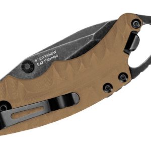 The Shuffle II is an tanto knife adaptation of the original that also sports a longer handle and blade. It’s still a compact knife and multi-function tool for everyday adventurers. The Shuffle II has a BlackWash finished tanto style blade, a backspacer with a bottle-opener, and a lanyard hole that is also an emergency screwdriver. The tan GFN handle features a sculpted pattern grip, nested steel liner lock, and reversible deep carry pocket clip.