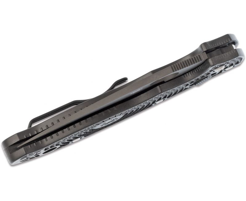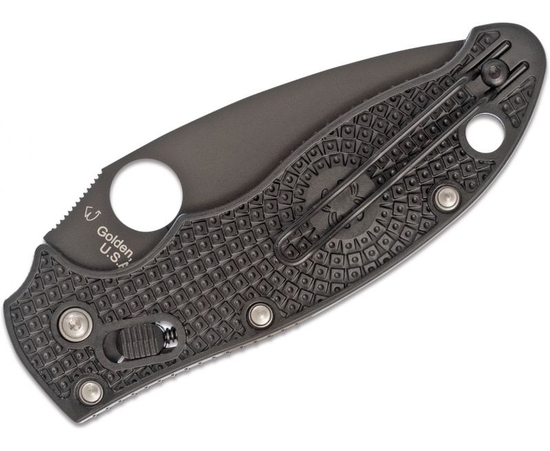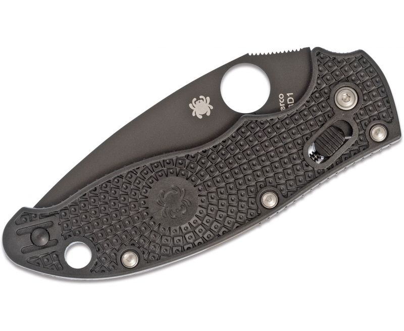 Weighing in at a scant three ounces, it features a full-flat-ground CTS BD1 stainless steel blade with Spyderco’s signature Trademark Round Hole for easy, ambidextrous, one-handed opening. Cloaked in its durable DLC coating, the blade is supported by a high-strength Ball Bearing Lock mechanism encased within a precision-machined steel insert in the handle. To ensure a secure grip in even the most demanding circumstances, the injection-molded FRCP handle has a high-traction Bi-Directional Texture pattern. Fully ambidextrous, this knife also sports a reversible wire clip that supports left or right-side tip-up carry.